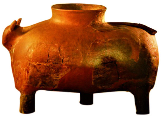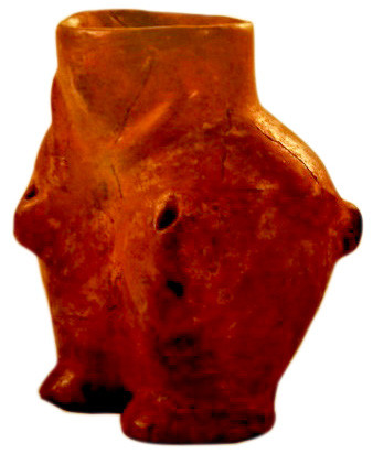 Снимка 1. Керамичен съд във вид на бик от гр. Ракитово - ранен неолит. РИМ – гр. Пазарджик   Снимка 2. Антропоморфна керамична чаша от гр. Ракитово - ранен неолит. РИМ – гр. Пазарджик.